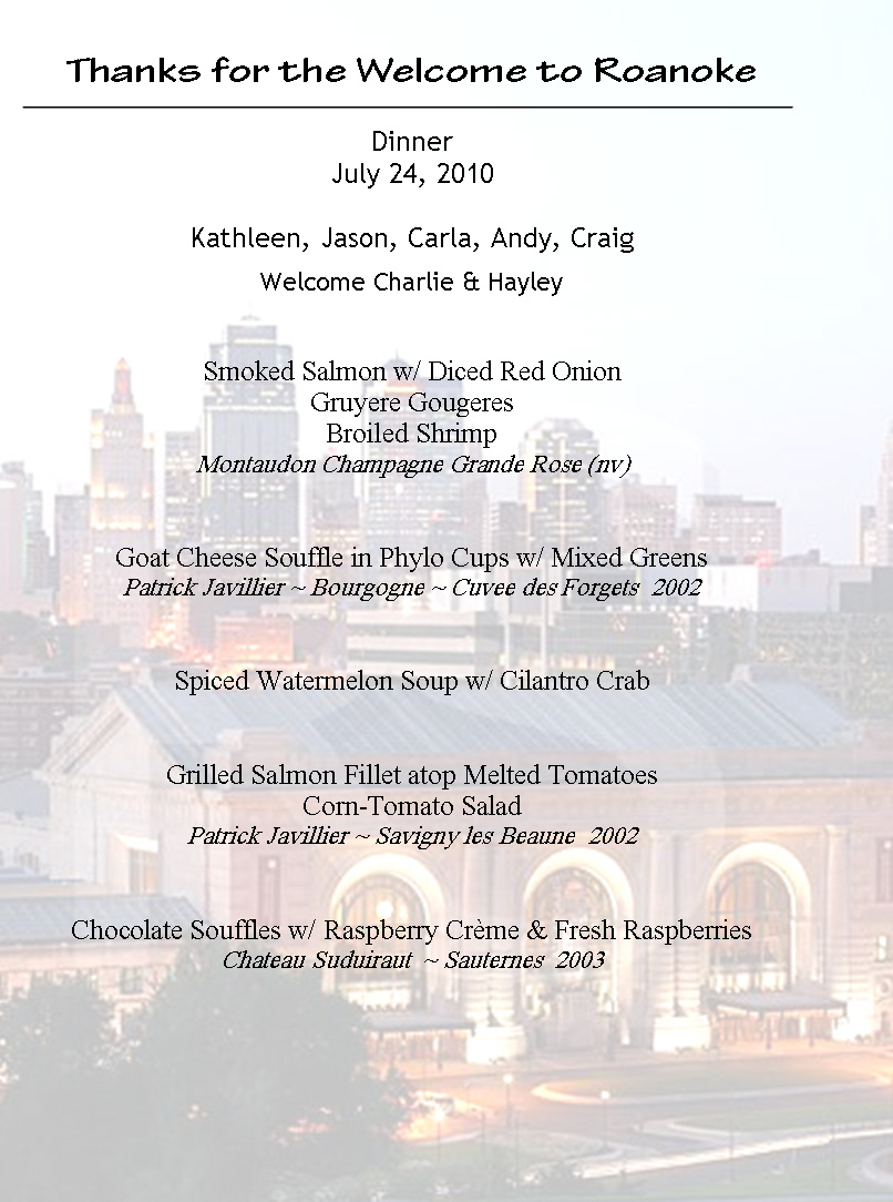 First Menu in the Club